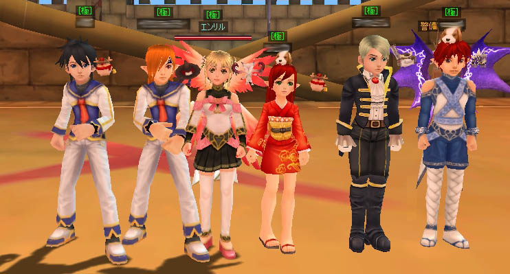 絆ギルドとの4~5人ずつとの対戦とは異なり、6~8人ずつと、いつもより少し多い人数だったので、エルドリン闘技場では手狭な感じだったかな