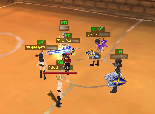 KQ後にエルドリン闘技場に行ってみると、絆ギルドの人たちが身内紅白戦をしていたのでなんとなく観戦してました。